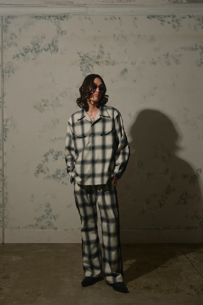 男臭さの感じるオンブレーチェックで作成したイージーパンツ。