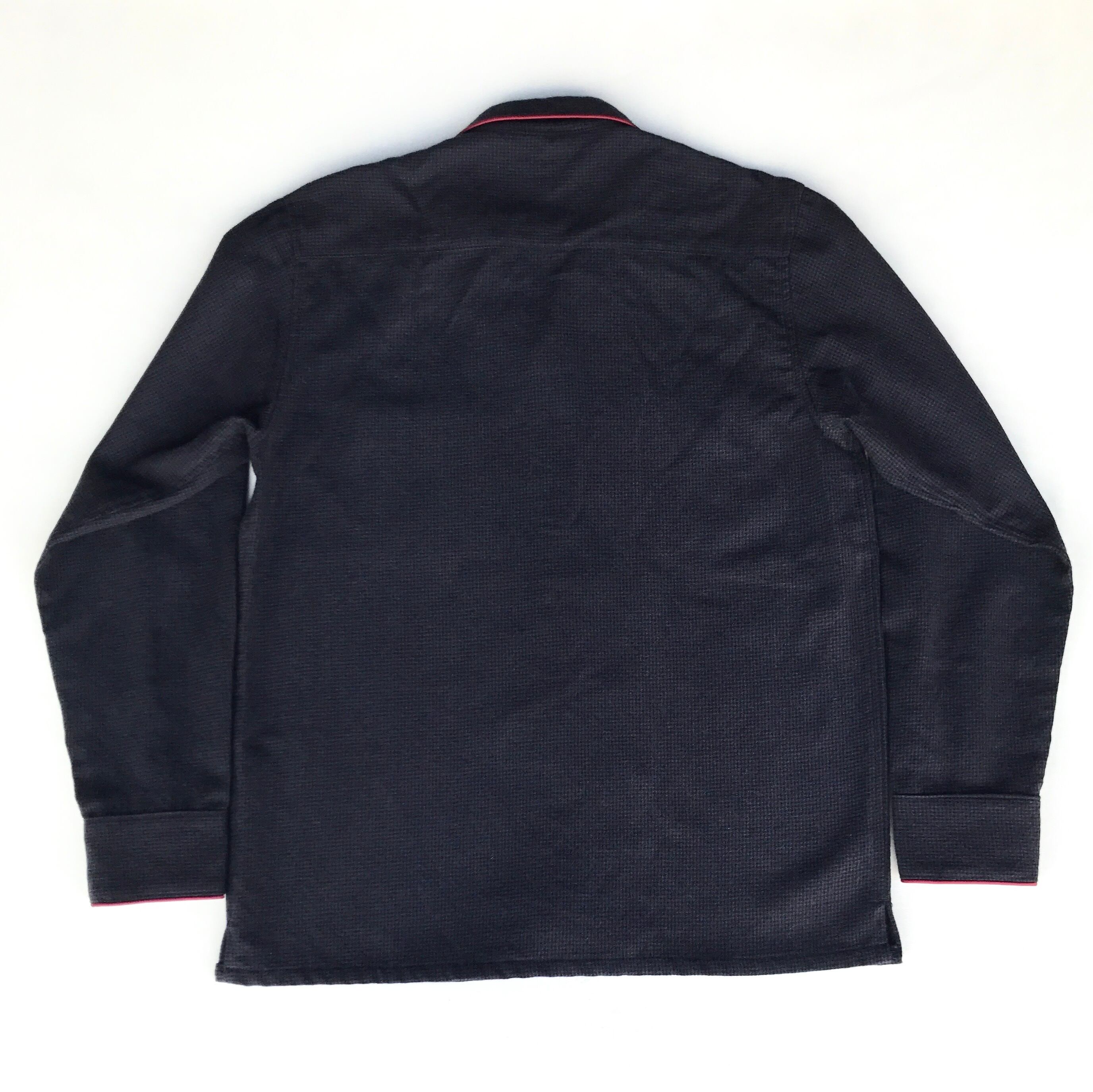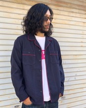 キュプラ素材のパイピングに加え、見頃裾の脇にらスリットをいれる事でパズリングホームらしい不良感と色気のあるデザインに。