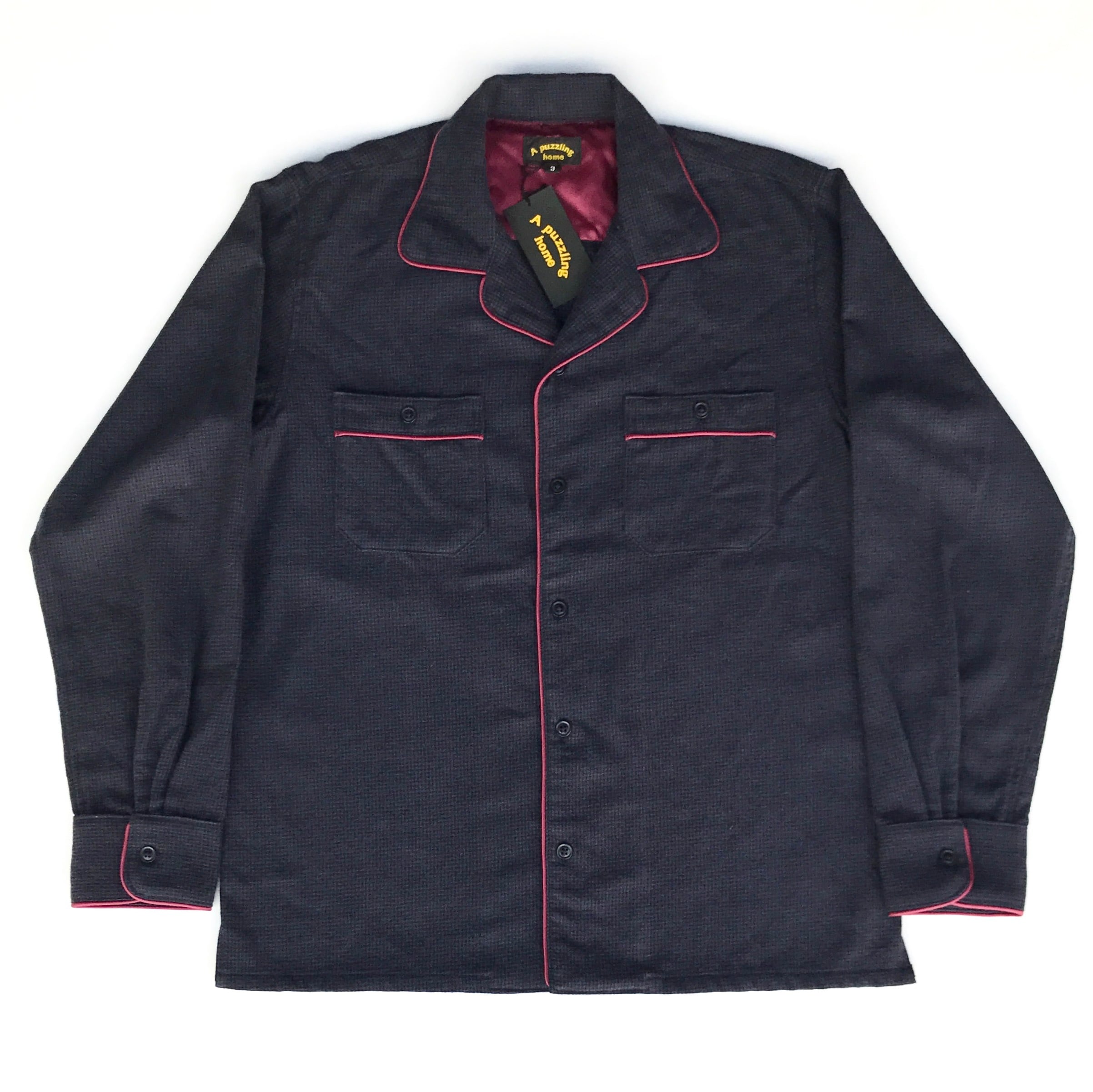 パイピングのオープンカラーは、パジャマっぽくなりかわいくなりすぎるのですが、