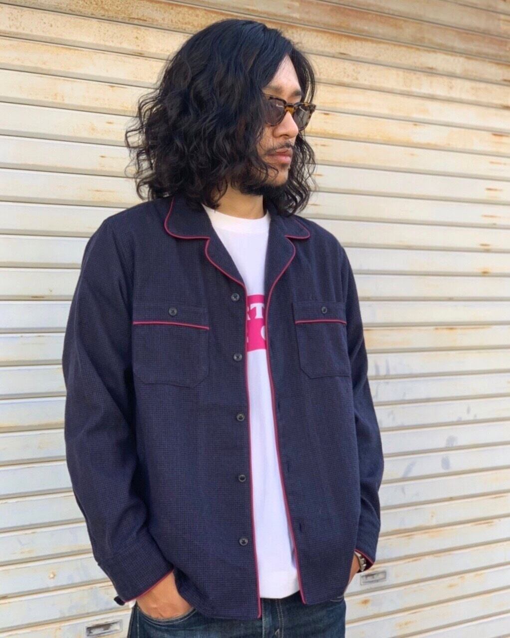 70年代UKパンクのイメージを落とし込んだデザインのオープンカラーシャツ