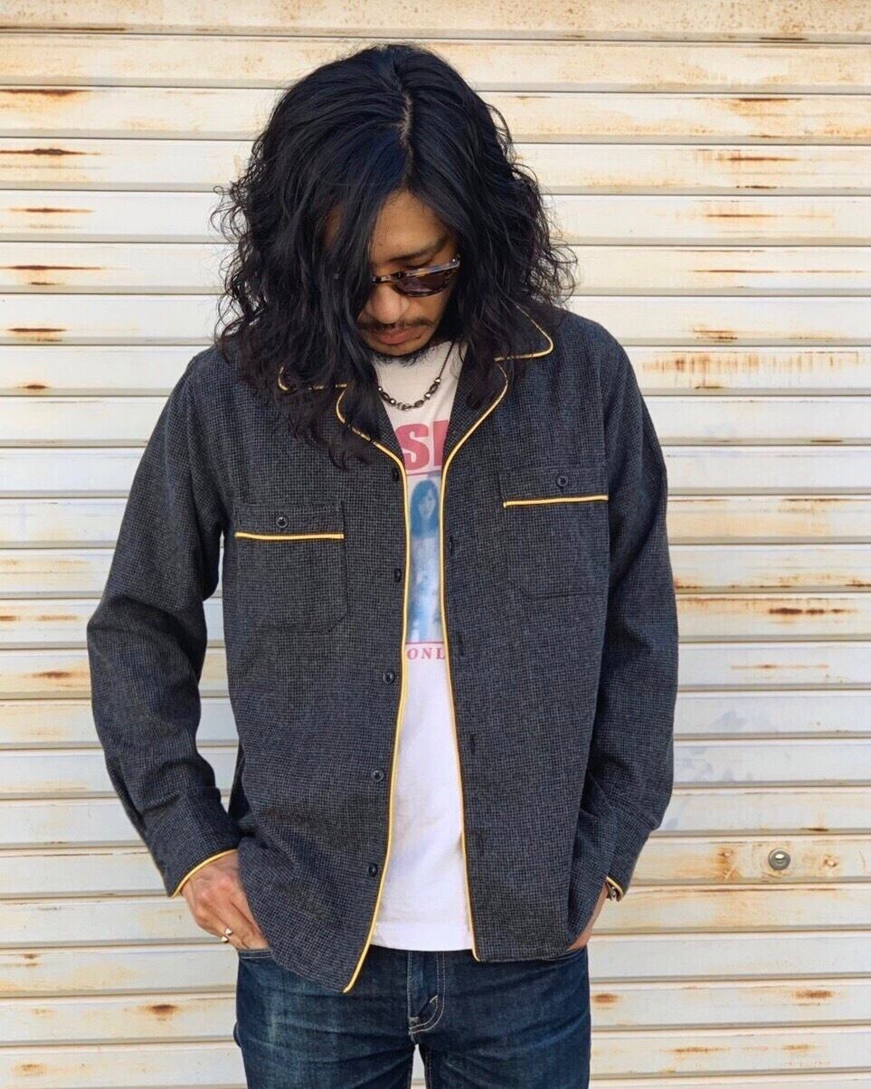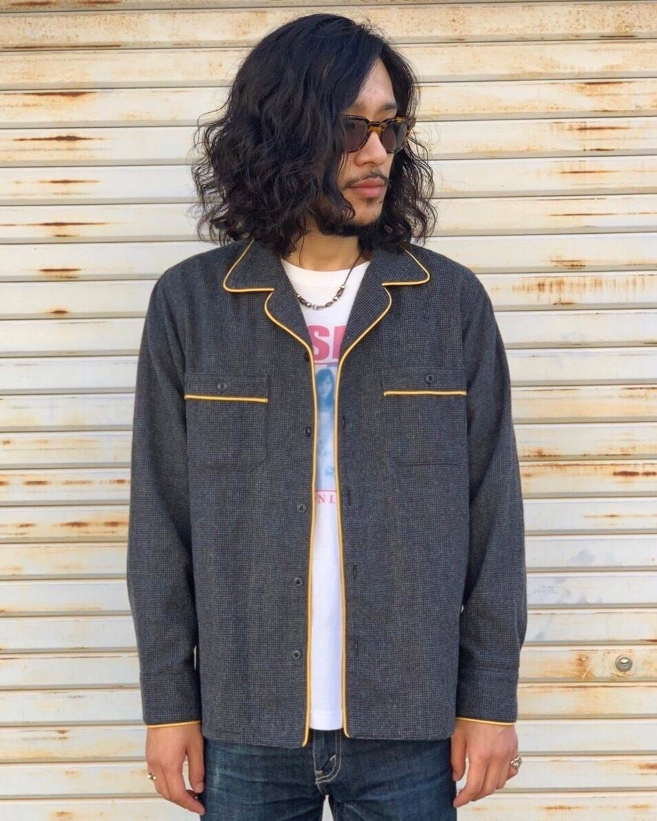 70年代UKパンクのイメージを落とし込んだデザインのオープンカラーシャツ