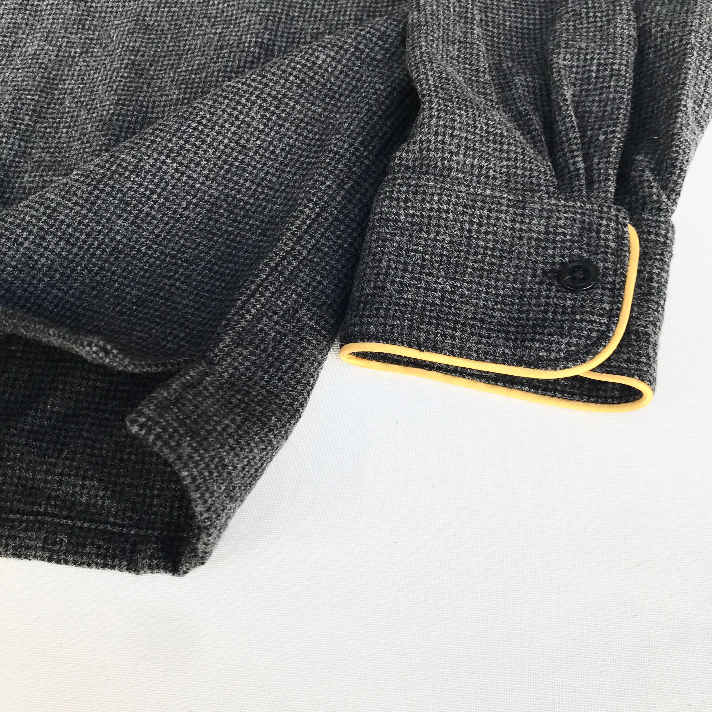 千鳥格子柄のコットンウールに光沢のあるキュプラでパイピングを施す事で、
