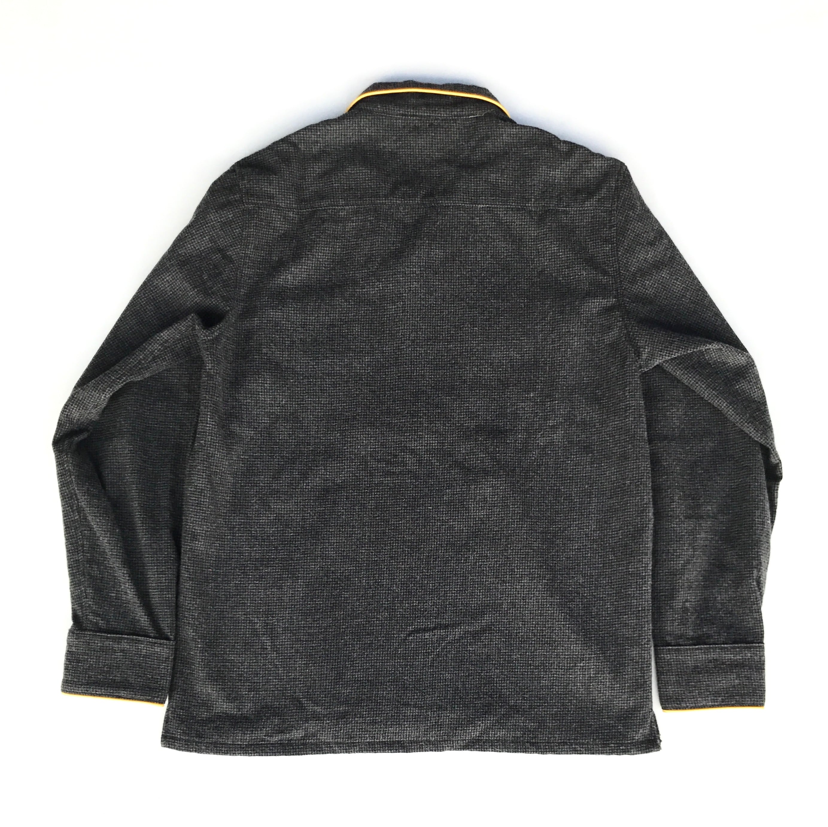 キュプラ素材のパイピングに加え、見頃裾の脇にらスリットをいれる事でパズリングホームらしい不良感と色気のあるデザインに。
