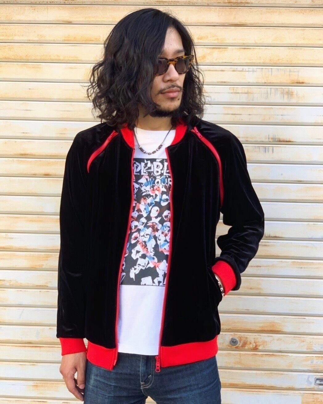 80年代的な不良感と色気のあるデザインのベロアジャージ。