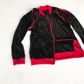 特徴的なzip使いによりトラックジャケットですがスポーティなイメージではなく、ボンテージパンツやライダースジャケットの様な不良感のあるデザインに。