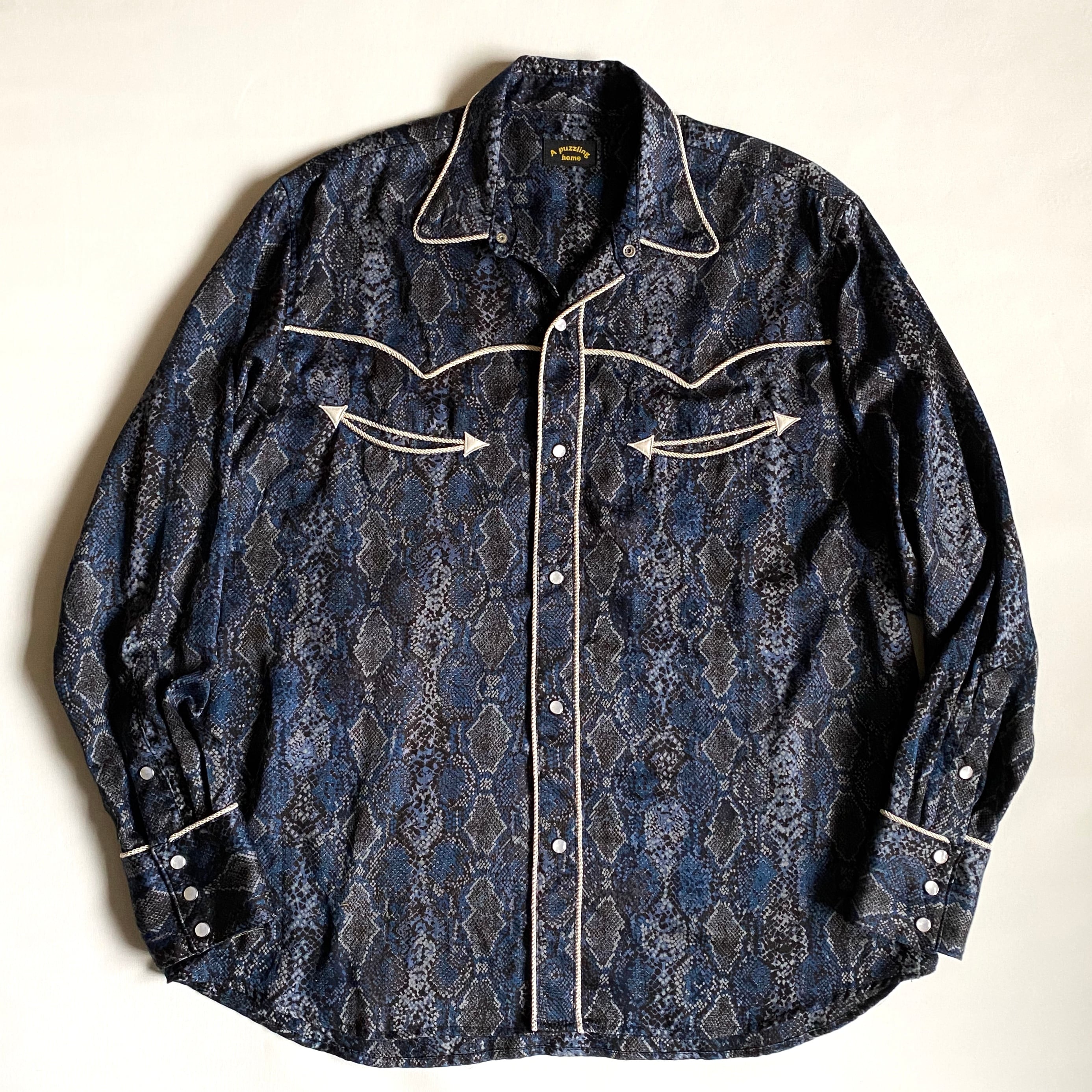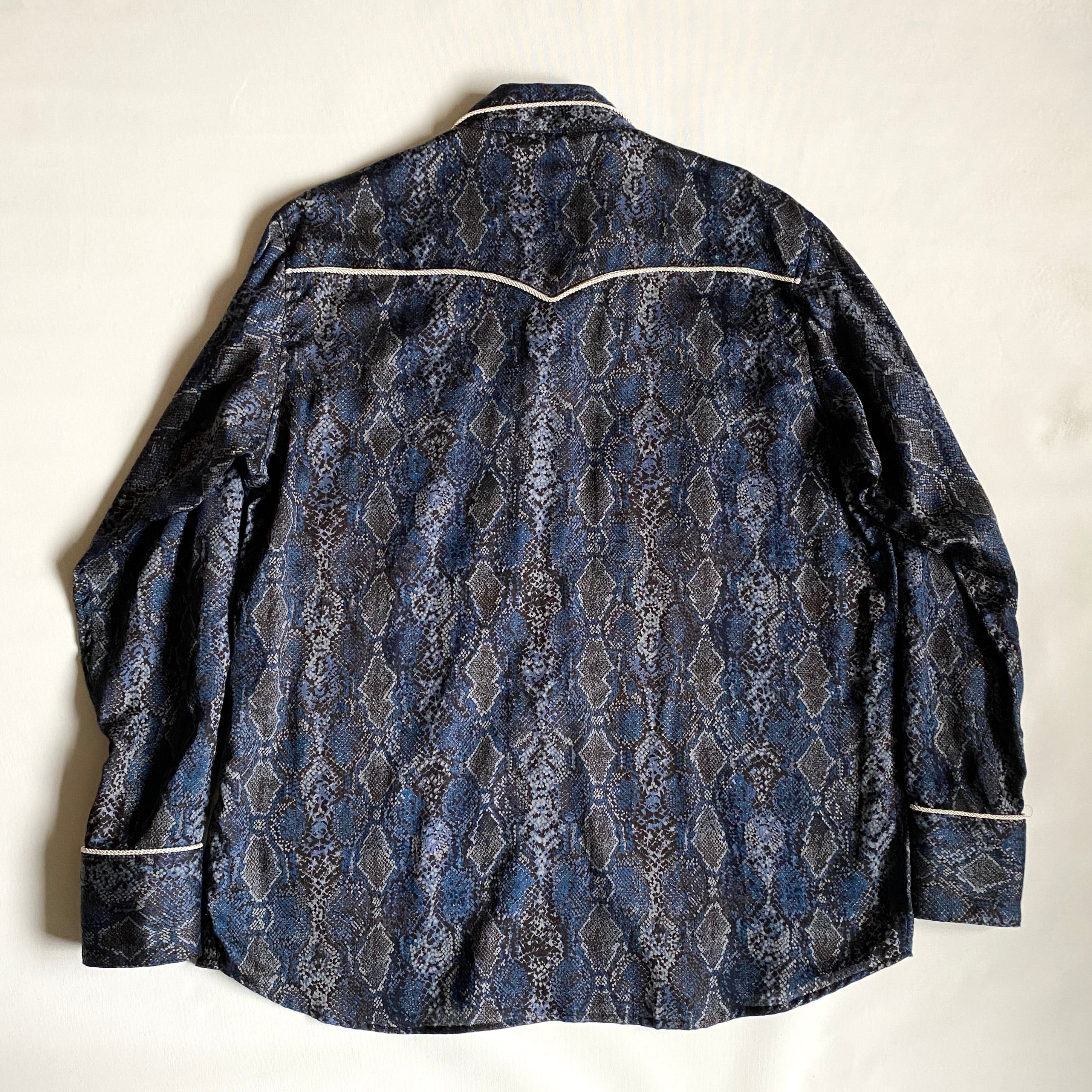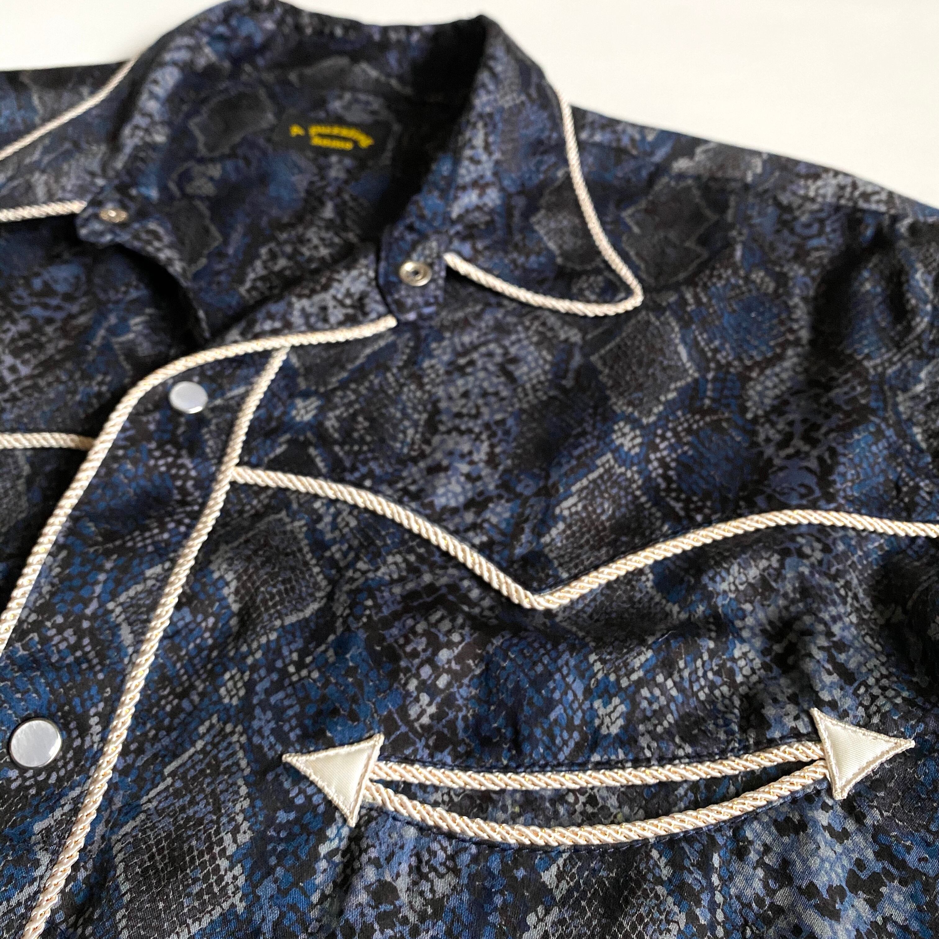 “ウエスタンシャツ×蛇柄×ラメ糸”の下品な組み合わせを、素材感、シルエット、ディテールで調和した色気、不良感のあるデザインのシャツ
