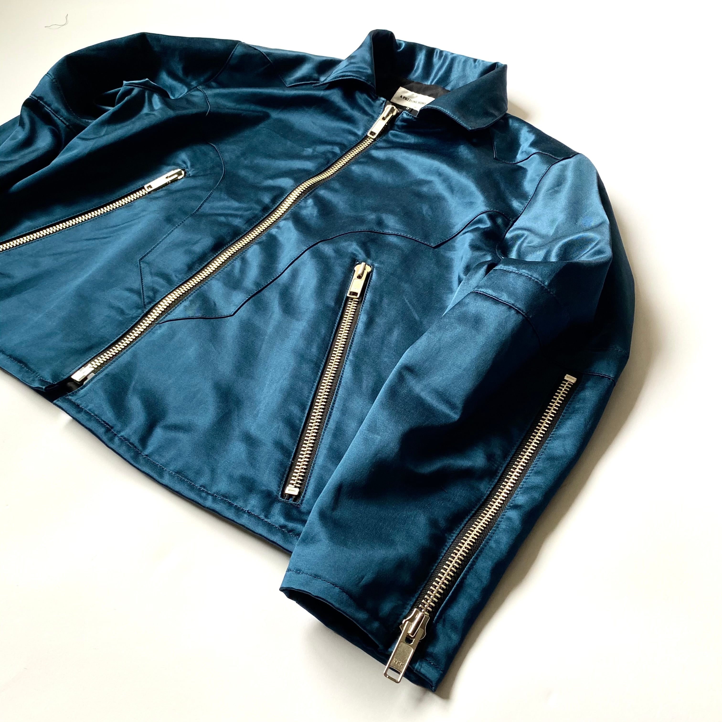 70年代のレザージャケットのテイストをルーズシルエットのスウィングトップスタイルににアレンジしたデザイン。