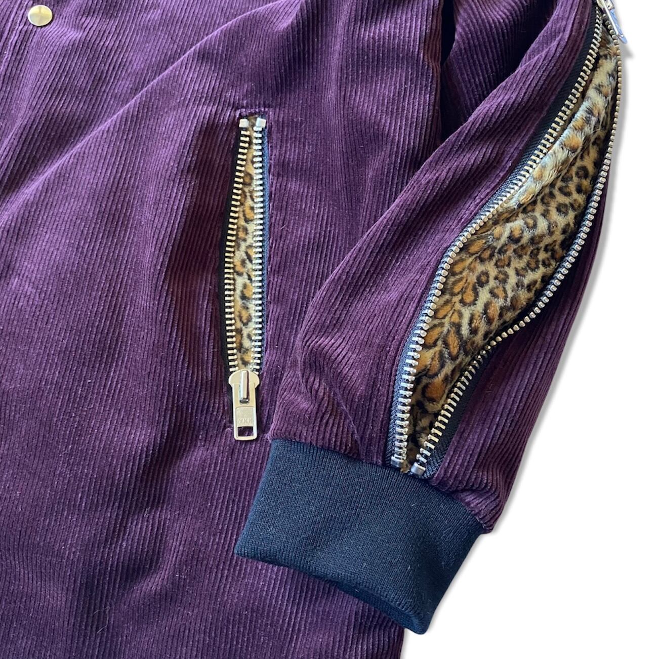 zip使いが80'sテイストを感じさせるデザインですが、zipを開けるとレオパード柄のラインになり50'sのファラオコートのようなルックスに