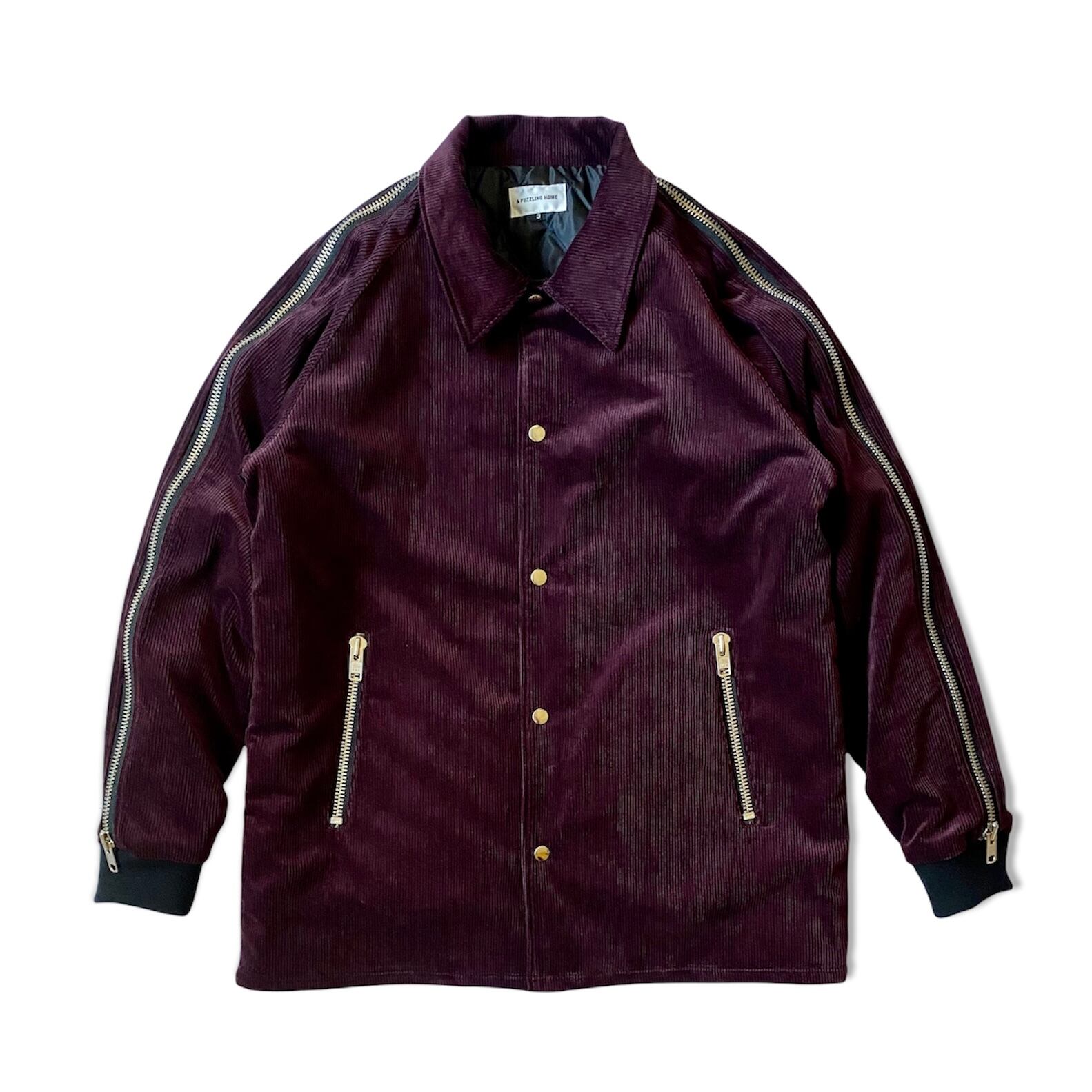首元から袖口まで伸びたzipが特徴的なコーチジャケット