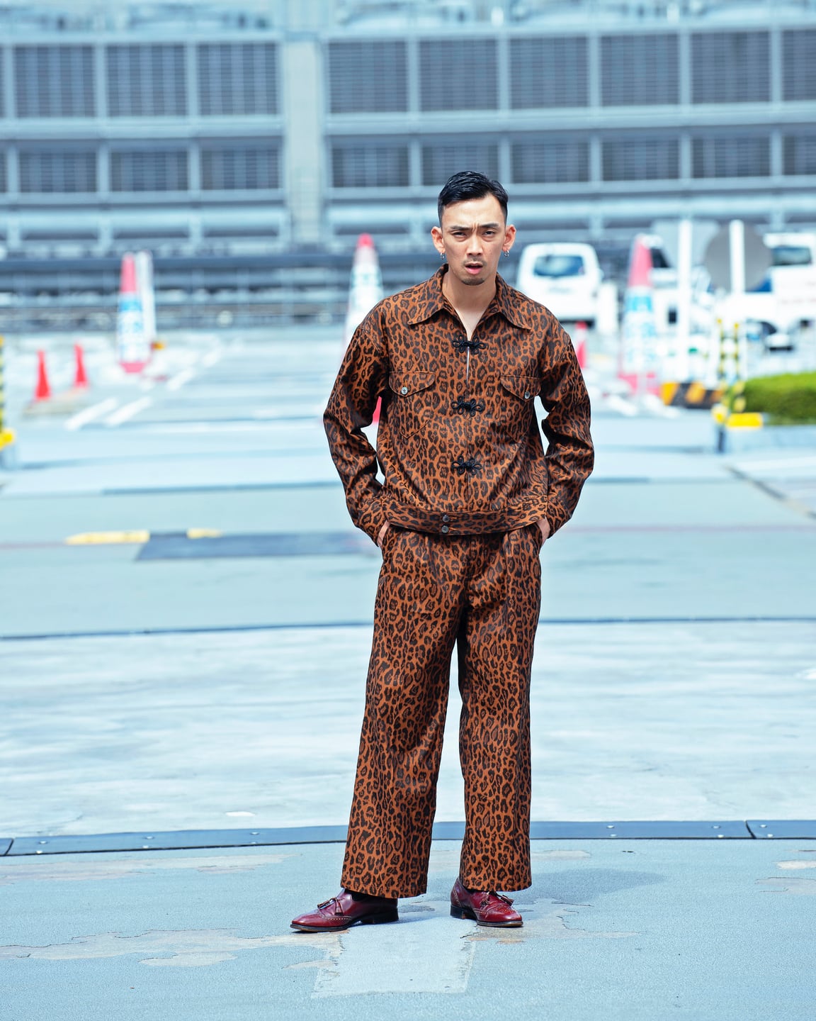 ヒョウ柄×太シルエットで男臭いデザインですが、プリントではなくジャガード織で光沢もあり、男臭さの中にも品のあるデザイン。
