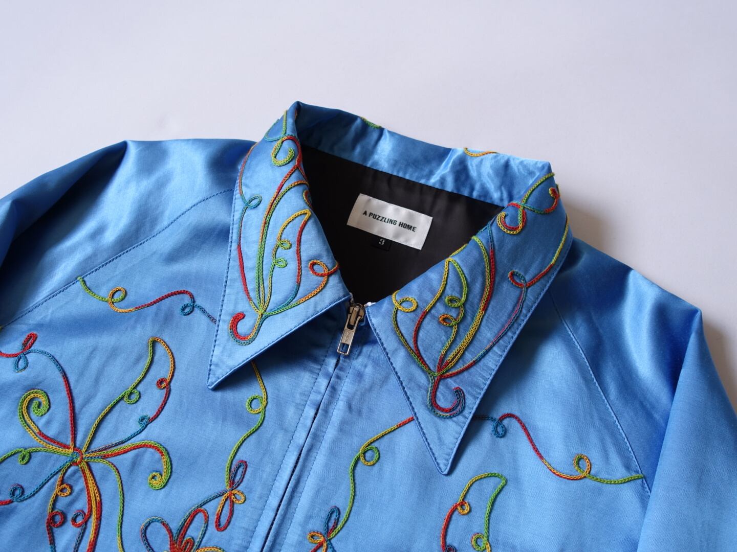 RAINBOW EMBROIDERY WESTERN JACKET - sax