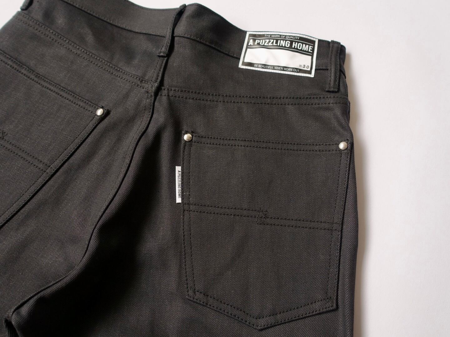 blackは完全な黒ではなく、径糸がチャコールグレー、緯糸がブラックなのでリジットの状態でも少しフェードした雰囲気です。