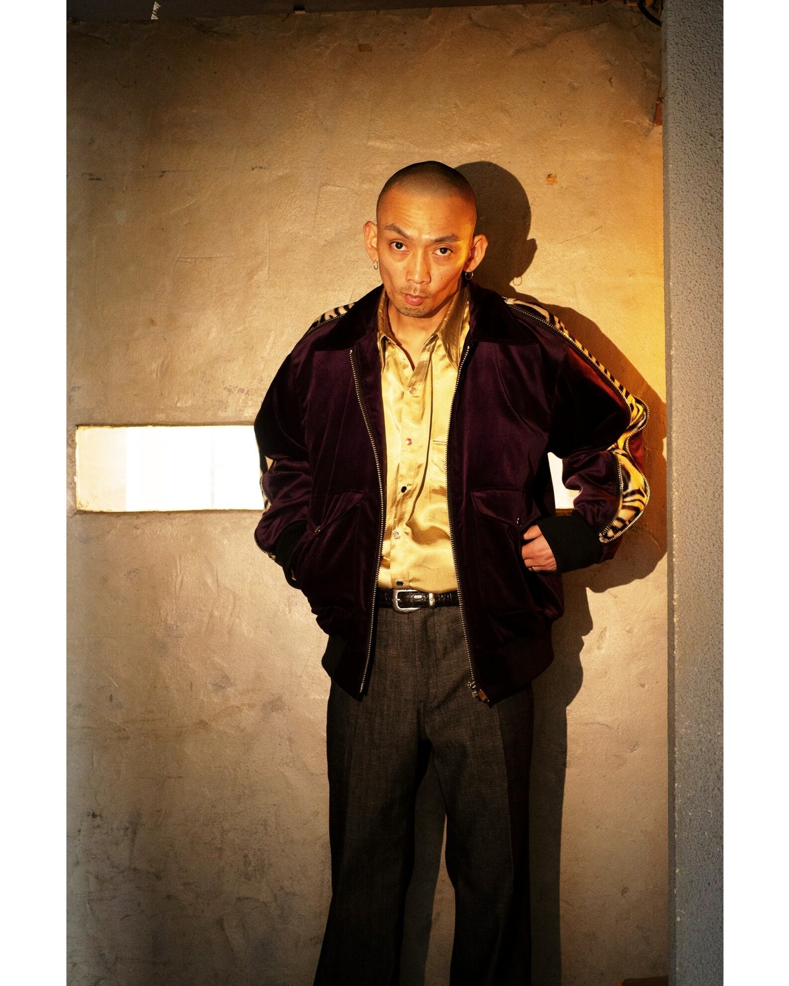 A-2フライトジャケットをモチーフにしながらも首元から袖口まで伸びたzipにより、パンクテイストを感じるジャケット