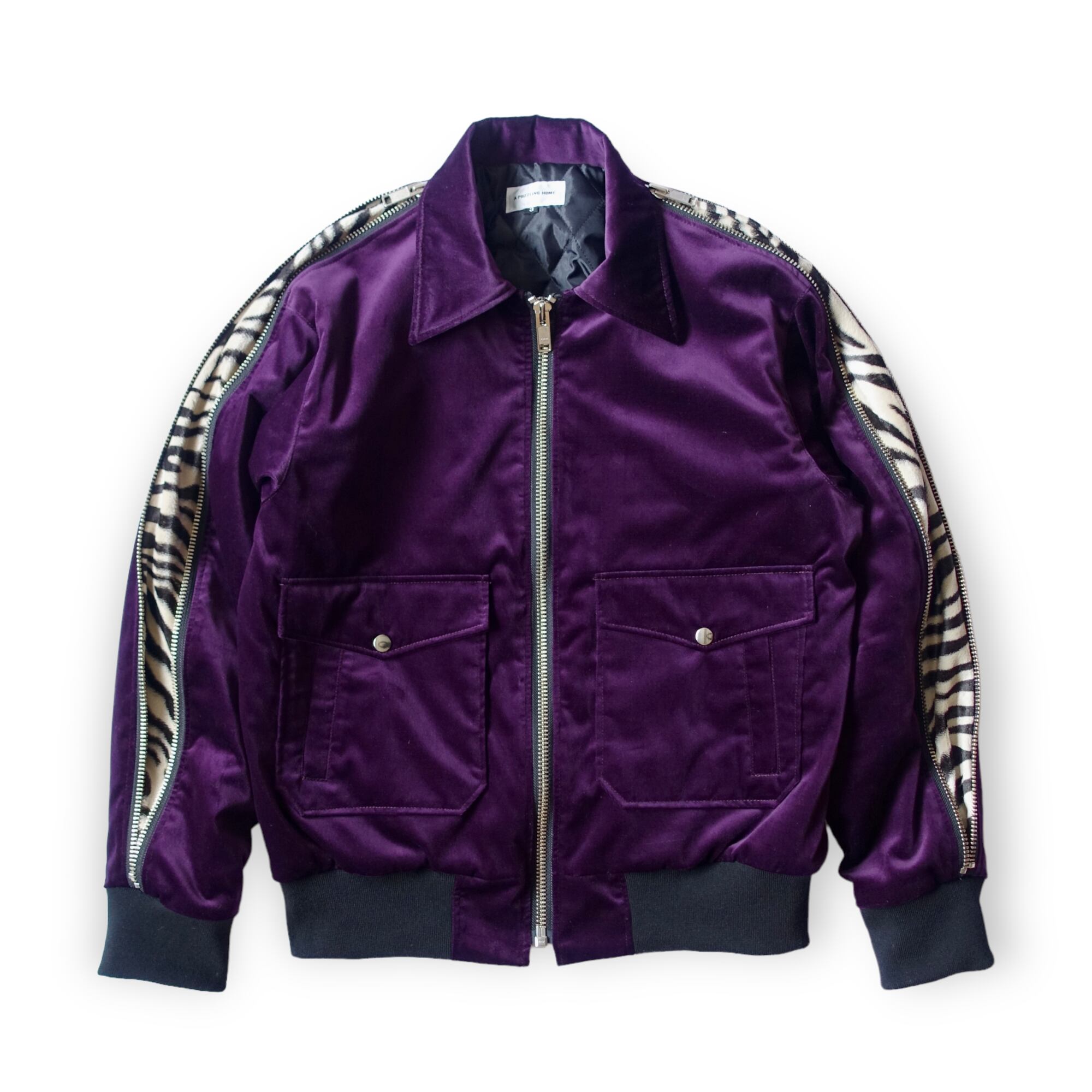 ZIP SLEEVE VELVET BOMBER JACKET - purple
