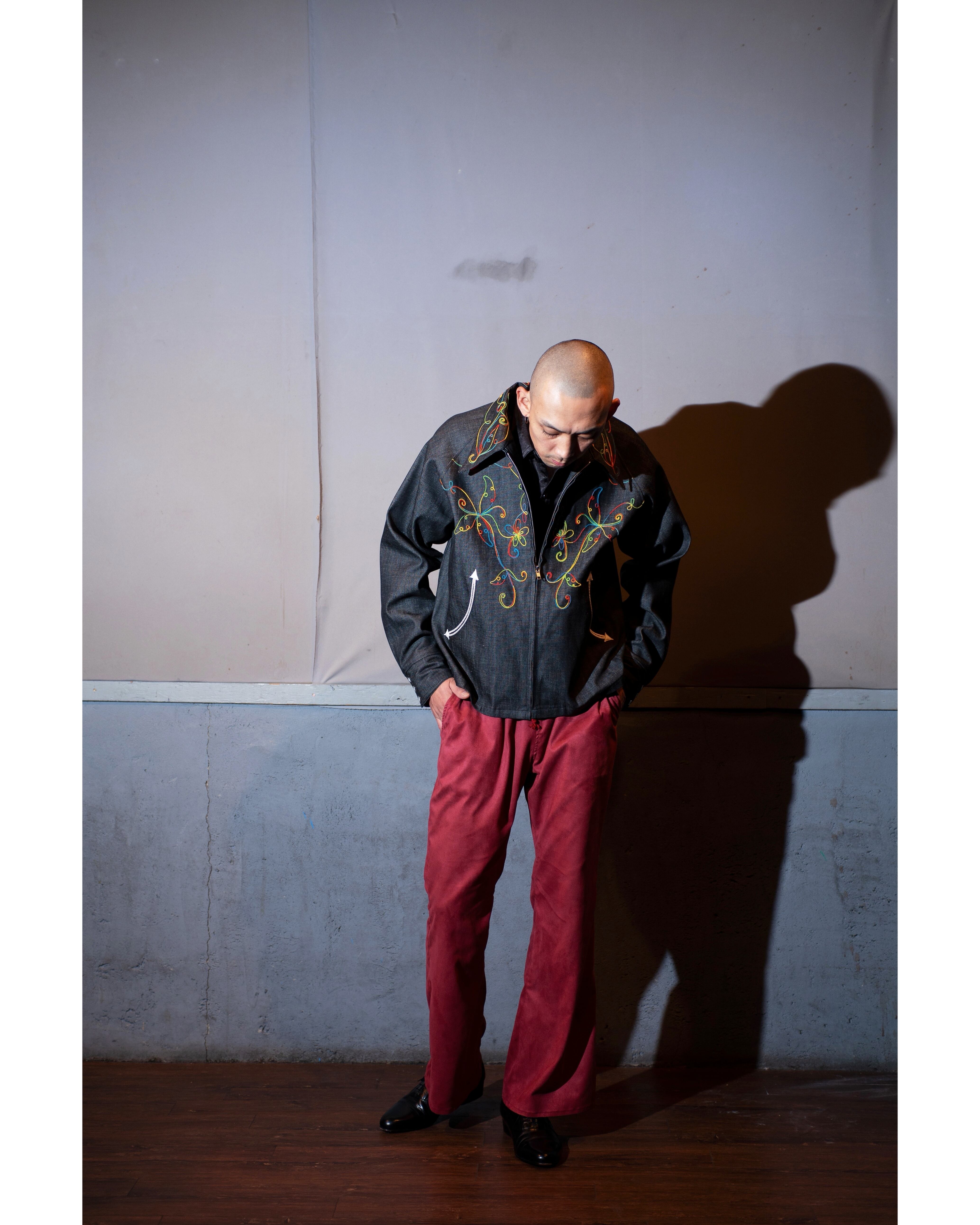 人口スウェードを使用したフレアシルエットのイージーパンツ