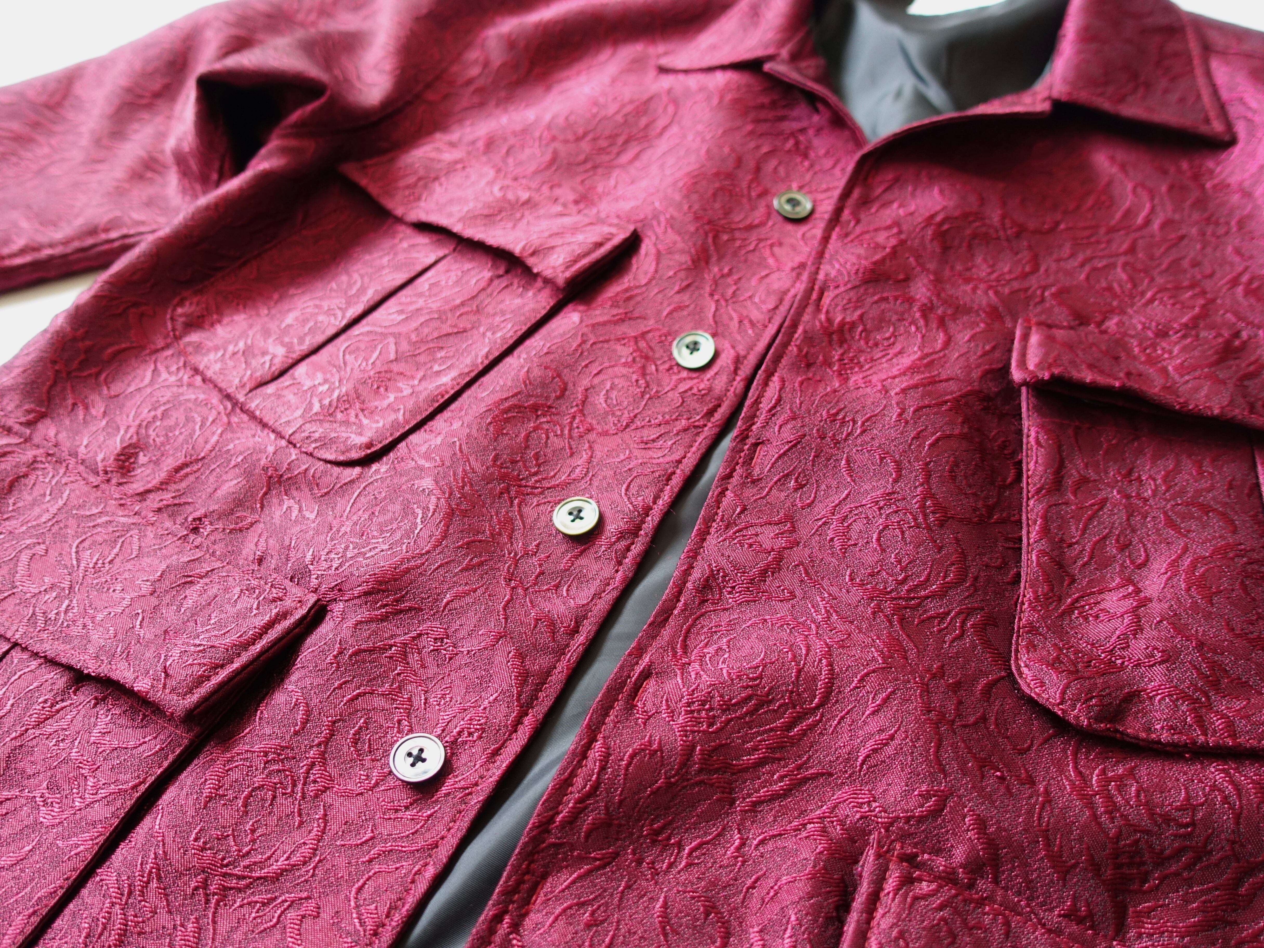 光沢のある薔薇柄ジャガードを使用したFATIGUE JACKET