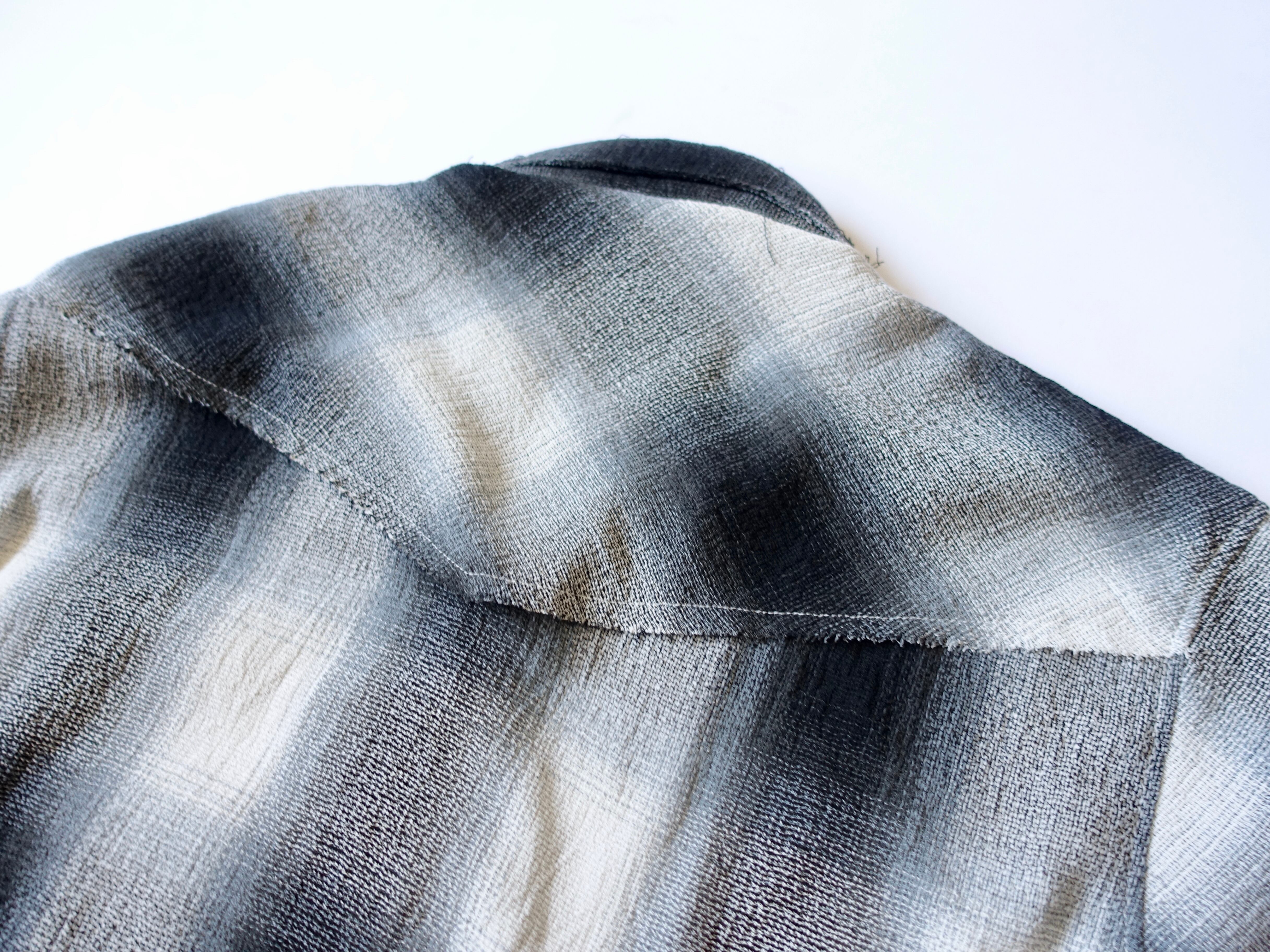 襟、ヨーク、カフス、フラップは断ち切り仕様にしグランジ感のあるデザイン